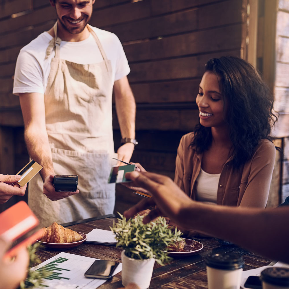 Top off coffee, pre-bus the plates, and close the check without leaving the table.