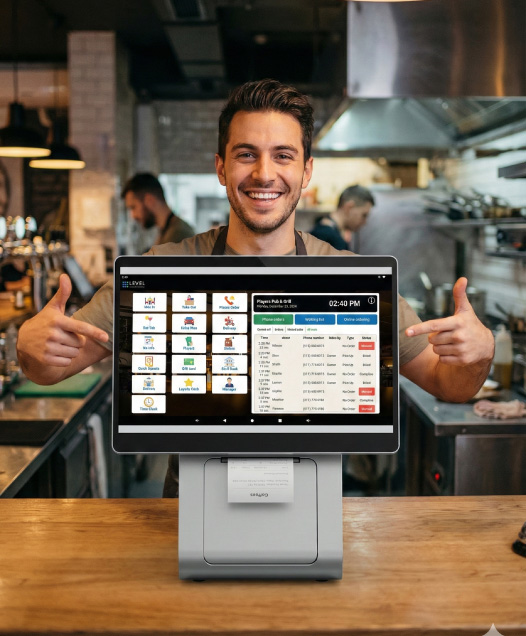 Level adapts to how you serve. Drop in kiosks to shorten lines, or keep a classic counter with quick keys and tap-to-pay. Run a build-your-own makeline where items route to the right stations and fire when they should. Capture phone numbers at every touchpoint to power loyalty and SMS without extra tools. Swap menus and pricing in seconds when promos change or new items launch. You control the flow, the screens, and the rules—without IT tickets.